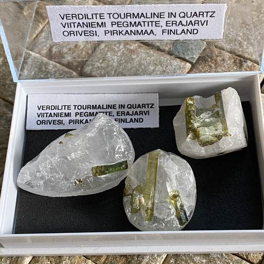 VERDILITE TOURMALINE IN QUARTZ x 3 - VIITANIEMI PEGMATITE, FINLAND 28g MF4105