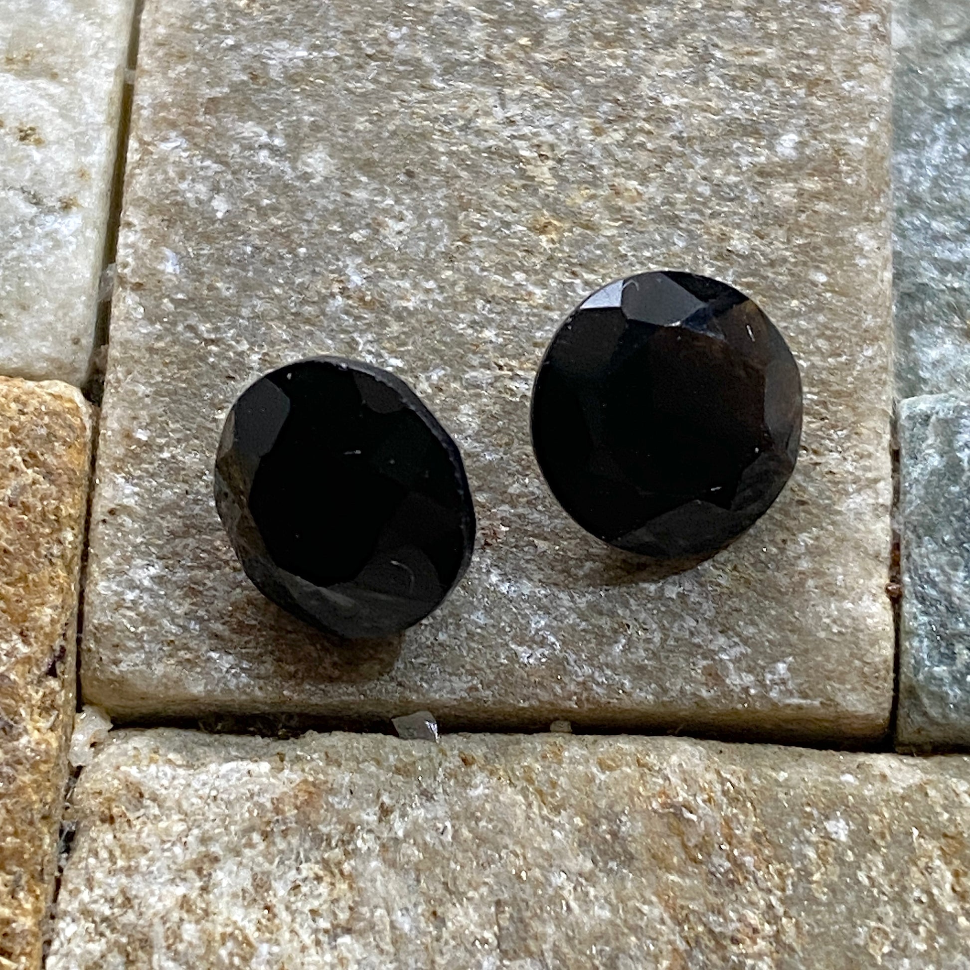 NOTE OF INTEREST : THE STONES APPEAR BLACK BUT ARE IN FACT VERY DARK BROWN AND PARTIALLY TRANSLUCENT - WOULD CLASSIFY AS DRAVITE NOT SCHORL.