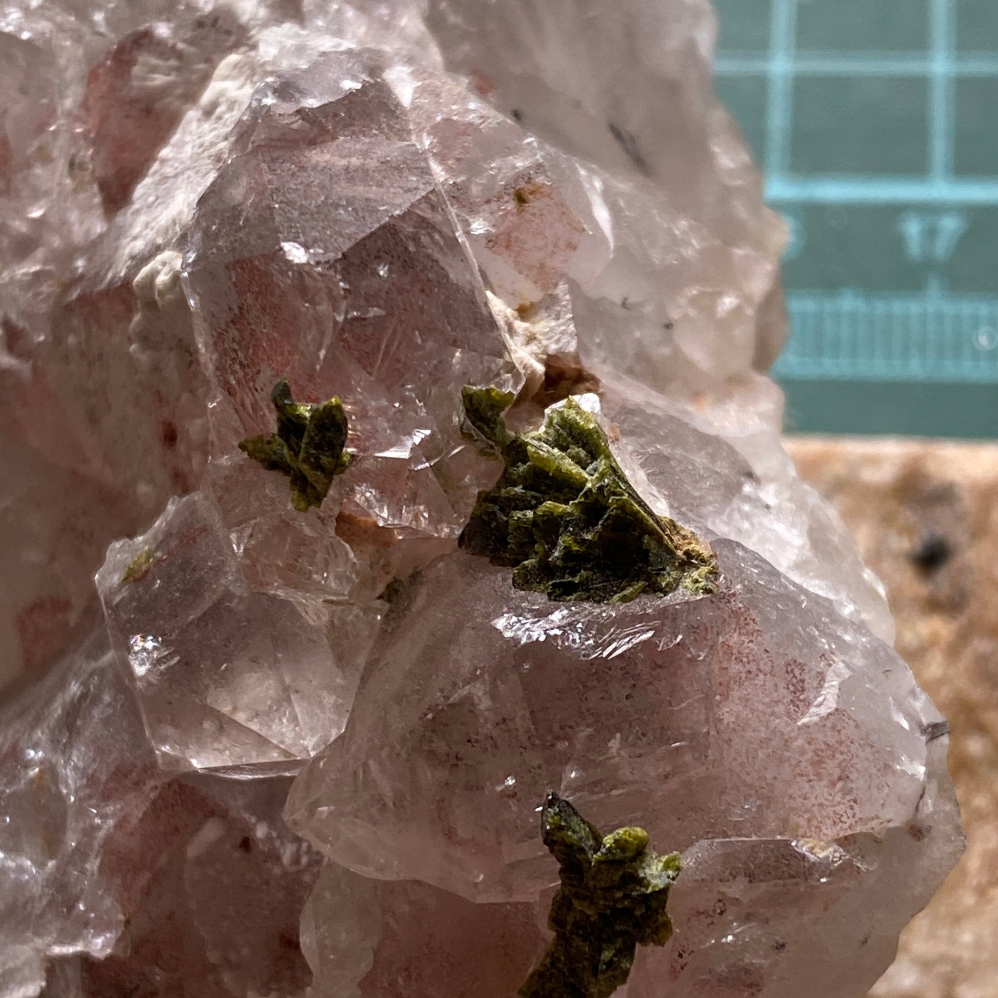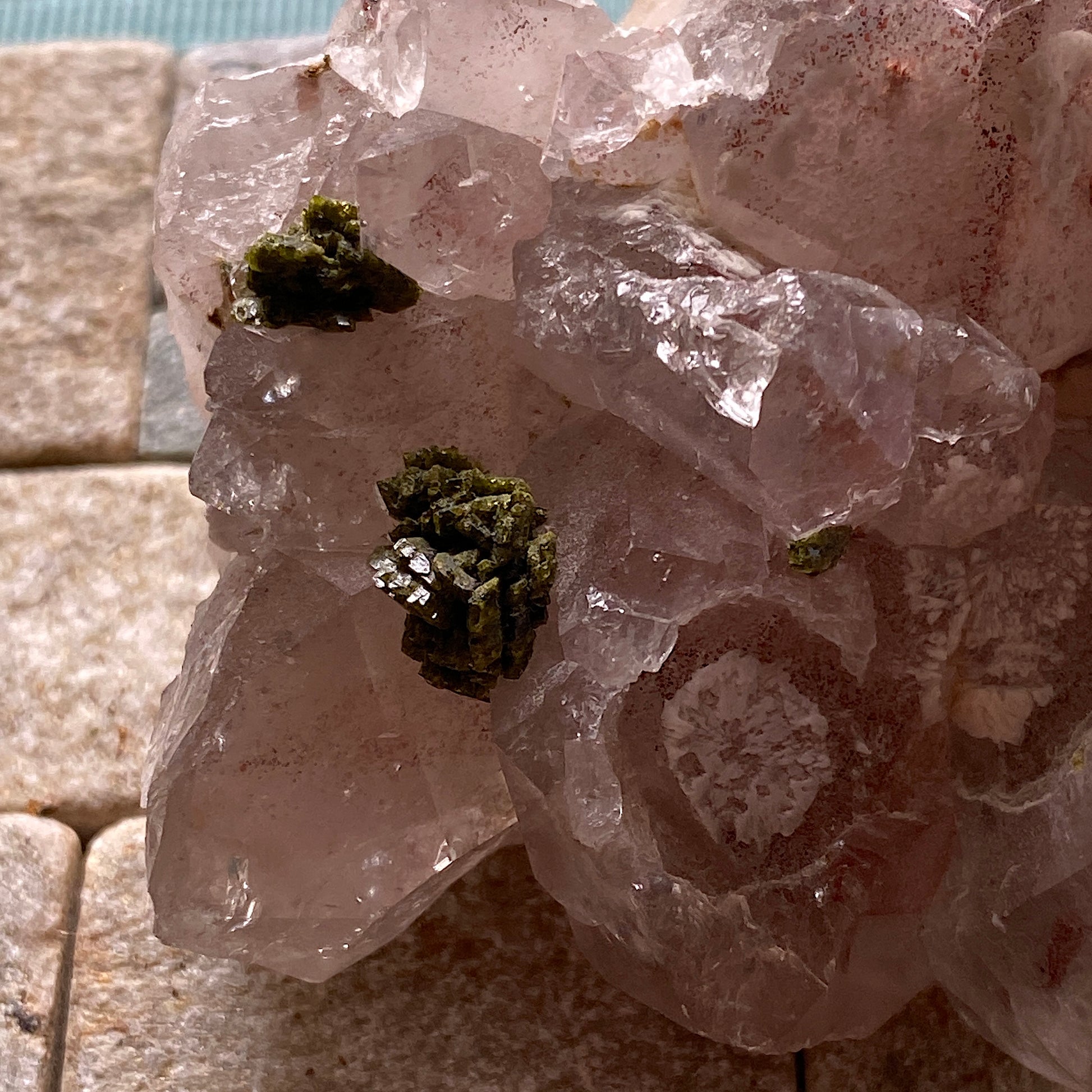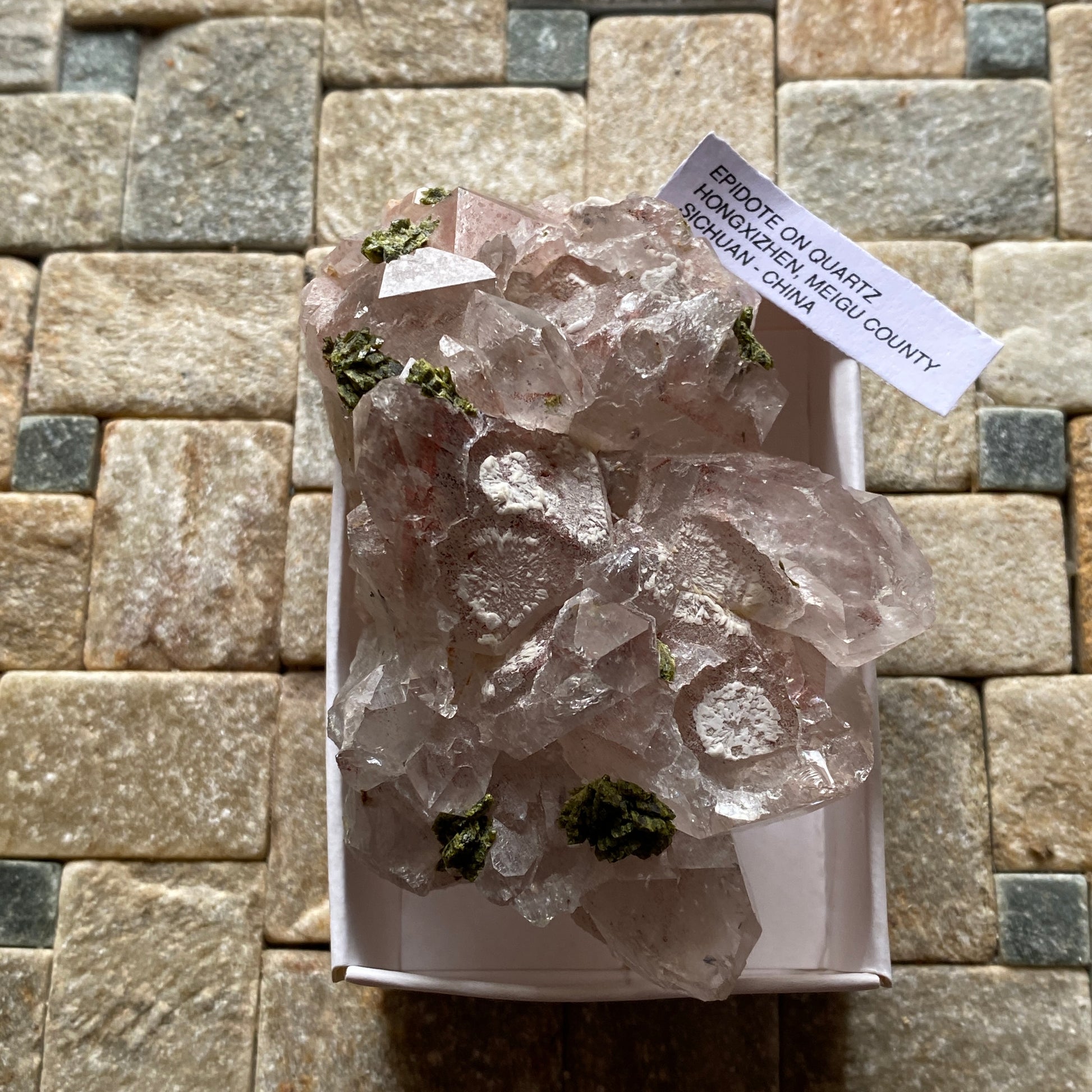 SPECIMEN : EPIDOTE CRYSTALS ON QUARTZ