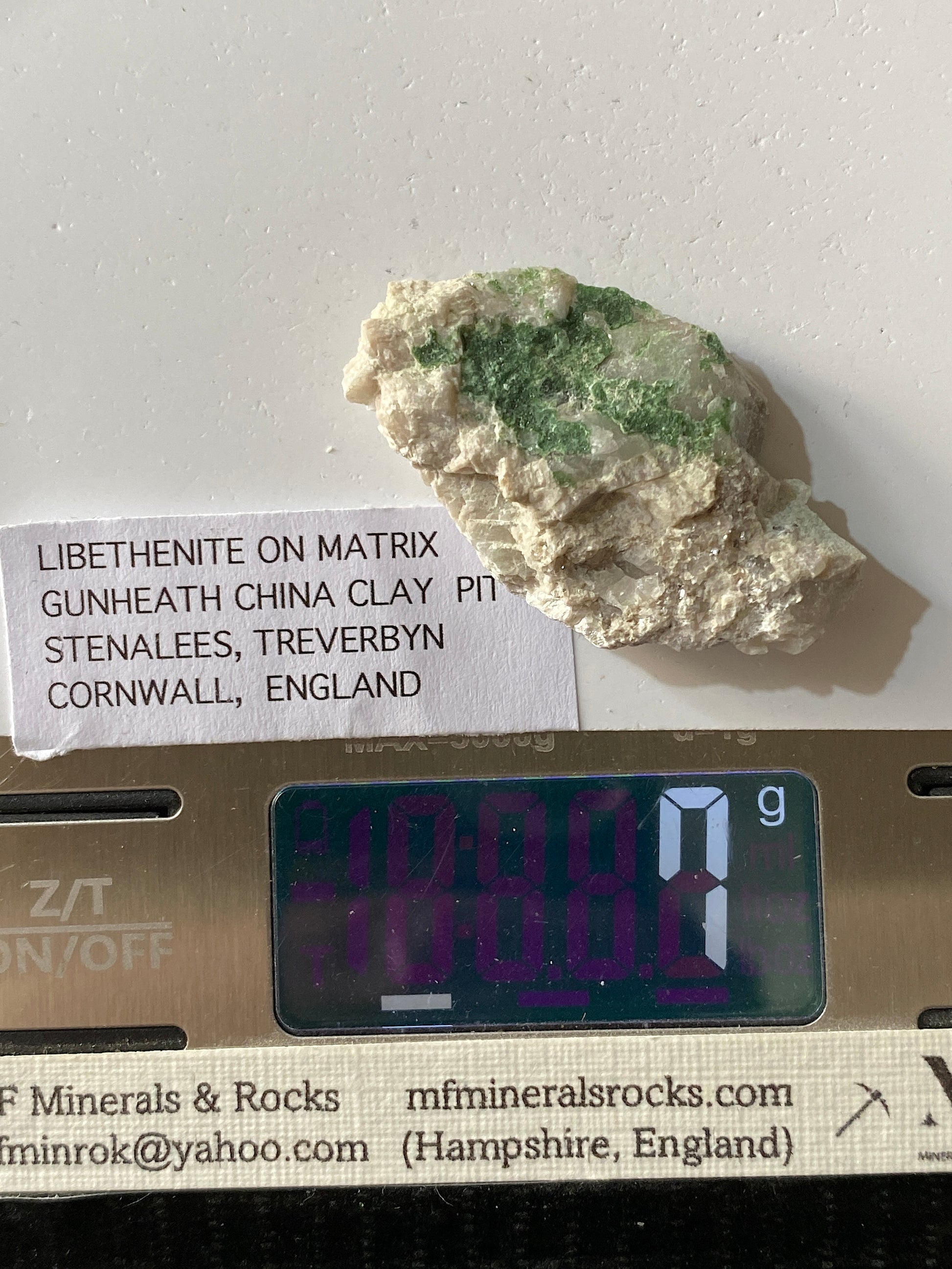 LIBETHENITE : GUNHEATH CHINA CLAY PIT, STENALEES, CORNWALL 7g MF1865